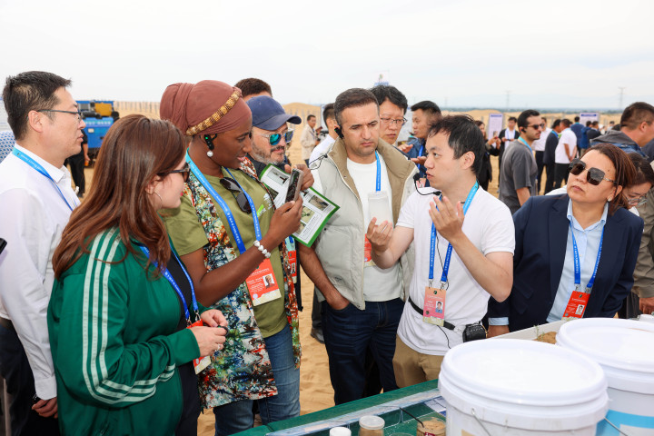 在“以路治沙”示范区,UNCCD土地英雄马里赫撸联盟执行经理罗基亚图・特拉奥雷接过工作人员递来的保水材料样品,认真听取技术细节并与工作人员交换联系方式。“中国治沙不仅有技术,还有完善的协作体系,希望马里能借鉴这样的方案,改善当地沙化困境。”罗基亚图・特拉奥雷说。