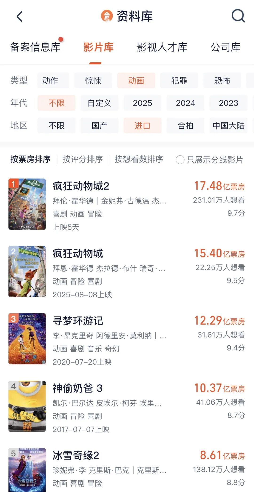 目前,《疯狂动物城2》的票房仍在快速上升中,据多个平台预测,其票房有望超过30亿元,有业内人士甚至已给出50亿元的高票房预期。若按照30亿元票房计算,该片有望进入2025年国内电影票房排行榜前3名。