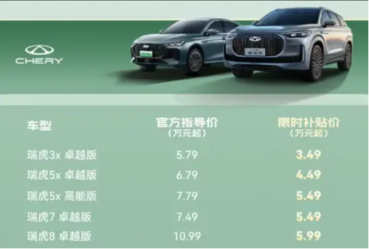 但尴尬的是,就在奇瑞高管表态坚决反对恶意竞争的同时,奇瑞却已经加入了新一轮的价格战。5月底,奇瑞旗下四大品牌——奇瑞、星途、捷途、iCar,超30款车型全面开启限时优惠补贴活动,车价最高可降5.5万元,活动时间为5月27日—6月2日。其中瑞虎3x卓越版指导价为5.79万元,补贴后限时售价3.49万元起,可谓是将价格战打到了极致。